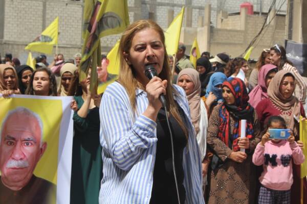 Piştî deqeyek rêzgirtin, Endama Koordînasyona Kongra Star a kantona Hesekê Nahid Silêman axivî. Nahid Silêman da zanîn ku pêvajoya ku Rojhilata Navîn tê de derbas dibe pêwîstiya wê bi pêkanîna banga Rêberê Gelê Kurd Abdulah Ocalan heye û wiha berdewam kir: “Îro em daketine qadan da ku em daxwaza azadiya fîzîkî ya Rêber Apo bikin, pergala îşkence û qirkirinê ya li dijî Rêber Apo tê meşandin şermezar bikin. Di 27’ê Sibatê de Rêbertî banga aştiyê kir. Lê dewleta Tirk a dagirker li gorî wê banga dîrokî tevnagere. Her tim êrîş û siyasetên xwe yên qirkirinê didomîne. Em wek jinên Bakur û Rojhilatê Sûriyeyê, asta têkoşîn û berxwedaniyê bilind bikin û xwedî li banga rêberê xwe derkevin û ji bo azadiya wî ya fîzîkî emê her kêlî li qadan bin. “