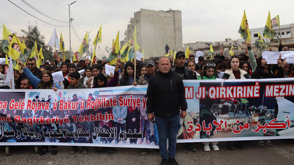 Meş bi slogana "Bijî Berxwedana Efrînê "û "Bê Serok Jiyan Nabe" bidawî bû.