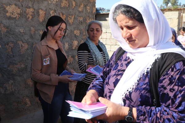 Mexmûr- Meclîsa Îştar a Wargeha Penaberan Şehît Rûstem Cûdî (Mexmûr) bi dirûşemeya ‘Bi qêrîna Jin Jiyan Azadî dihûnin tevna jiyanê’ dabû destpêkirin. Meclîsa Îştar a Wargeha Penaberan Şehît Rûstem Cûdî (Mexmûr) di çarçoveya rêze çalakiyên 8’ê Adarê Roja Jinan a Cîhanê de li kolanên Mexmûrê belavok belav kir. Jinên wargeha Mexmur li Wexfa Jinên Wargehê kombun, bi hilgirtina belavokên 8’ê Adarê li kolanên Mexmûrê dest bi belavkirina belavokan kirin.
