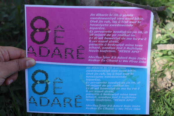 Mexmûr-  Meclîsa Îştar a Wargeha Penaberan Şehît Rûstem Cûdî (Mexmûr) bi dirûşemeya ‘Bi qêrîna Jin Jiyan Azadî dihûnin tevna jiyanê’ dabû destpêkirin. Meclîsa Îştar a Wargeha Penaberan Şehît Rûstem Cûdî (Mexmûr) di çarçoveya rêze çalakiyên 8’ê Adarê Roja Jinan a Cîhanê de li kolanên Mexmûrê belavok belav kir. Jinên wargeha Mexmur li Wexfa Jinên Wargehê kombun, bi hilgirtina belavokên 8’ê Adarê li kolanên Mexmûrê dest bi belavkirina belavokan kirin.