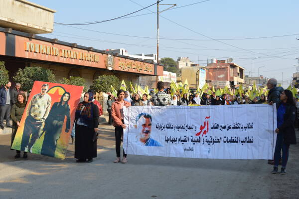 Qamişlo - Welatiyên bajarê Qamişlo-Bakur û Rojhilatê Sûriyeyê bi dirûşma “Bimre hêzên komploger, bijî berxwedana Îmraliyê” daketin qadan û bi meşeke girseyî tecrîda girankirî ya li ser Rêberê Gelê Kurd Abdullah Ocalan şermezar kirin. Di meşê de wêneyê Rêberê Gelê Kurd Abdullah Ocalan hatibû hildan her wiha welatiyan bi dirûşma “Bijî Serok Apo”, “Bê Serok jiyan nabe” û “Berxwedan jiyan e berz kirin. Meş ji çerxeriya Sonî ya bajarê Qamişloyê dest pê kir heta çerxeriya şehîd Rûbar bi dawî bû.