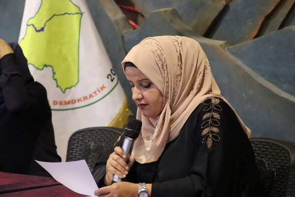 Endama komîteya perwerdeyê ya Kombûna Jinan a Zenûbiya Nûr El Huda got: "Jinên Sûriyeyî di şoreşê de roleke bi bandor û girîng lîstin û gelek qurbanî dan. Ji ber vê yekê, girîng e ku ew di avakirina aştiyeyê û teşekirina siberoja welêt de bi hêz bin.”