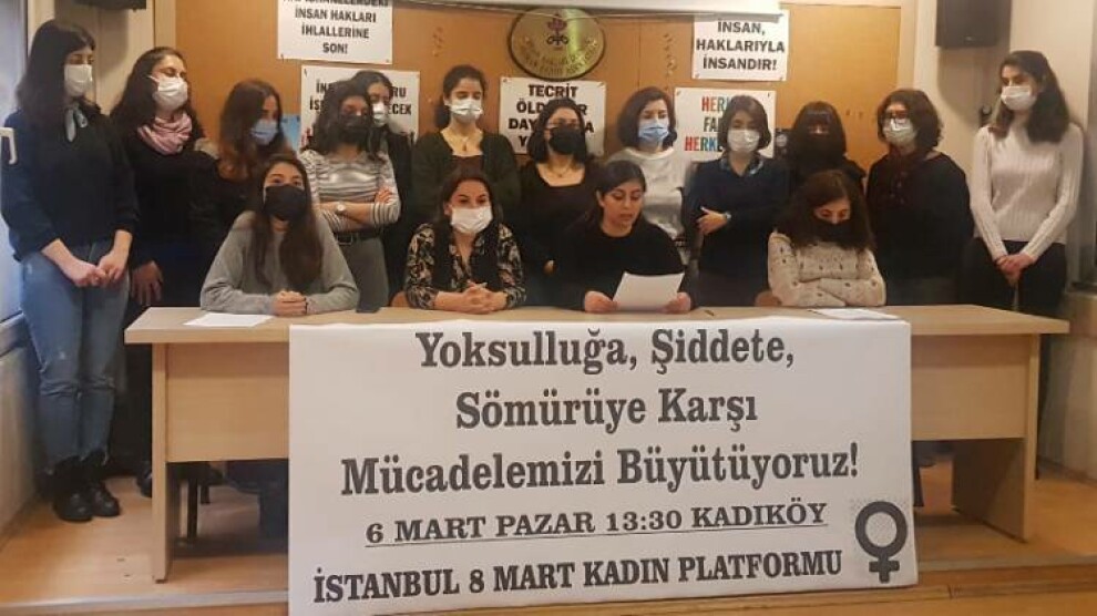 Stenbol - Platforma jinan a 8'ê Adarê ya Stenbolê bernameya xwe ya 8'ê Adarê Roja Jinên Cîhanê li Şaxa Komeleya Mafên Mirovan (ÎHD) bi civîneke çapemeniyê eşkere kir. Jinan diyar kir ku ew ê di vê 8'ê Adarê de bi dirûşma“ Em têkoşîna li dijî xizanî, tundî û kolonyalîzmê mezin dikin! Hêza me ya guhertinê heye," li qadan bin. Di civîna ku tevî endamên platformê, gelek saziyên jinan jî tevli bûn pankarta "Em li dijî xizanî, tundî û kolonyalîzmê têkoşînê mezin dikin" hat vekirin.
