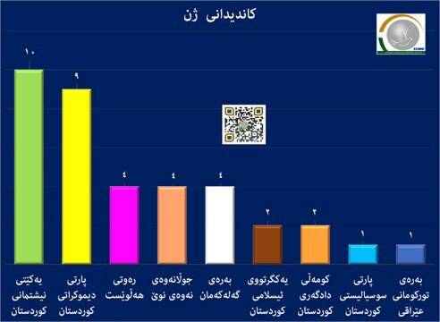 Li gorî Komîsyona Hilbijartina Bilind a Serbixwe ya Iraqê, li bajarê Duhokê ji 59 namzedan 20 jê jin in ango hejmara namzedên mêr sêr car li jinan e.