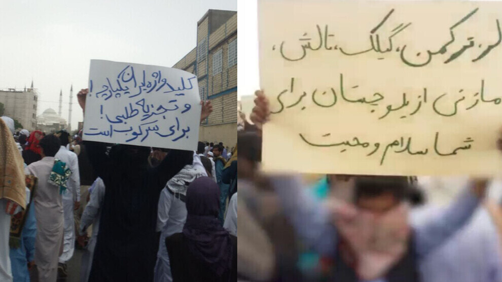 Di çalakiyê de dirûşmên ‘Bimre Xumeynî’, ‘Bimre dîktator’, ‘Birayê min ê şehîd ez ê tola te hilînim’, ‘Yê birayê min kuştî ez ê bikujim’ û ‘Ji Zahîdan heta Tehranê canê xwe feda dikim’ hatin berzkirin.