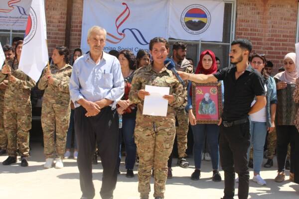 Hesekê - Her roj herêmên Bakûr û Rojhilatê Sûriyê rastî êrîşan tê, dewleta tirk a dagirker bi belafirên bê mirov sivîlan hedef digire. Meclisa Civaka Ermenî û Tabûra Şehîd Nûbar û Oziyan bi daxuyaniyekê êrîşan şermezar kirin. Daxuyanî li dibistana Zat Nitaqeyîn a taxa Kelasê ya bajarê Hesekê ji aliyê şervana Tabûra Şehîd Nûbar û Ozyan Yerîvan Ozanyar ve hate xwendin. Di daxuyaniyê de endam û rêvberên Kongra Star ên bajarê Hesekê amade bûn.