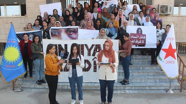 Qamişlo – Li bajarê Qamişlo- Bakur û Rojhilatê Sûriyeyê Meclisa Jin a Partiya Yekîtiya Demokratîk (PYD) derbarê rawestandina qetilkirina jinan de bi dirûşma "Na ji kuştina jinan re, Jin, Jiyan, Azadî", bi tevlîbûna hemû rêxistinên jinan, daxuyaniyeke çapemeniyê dan û ragihandin ku ew pêngava xwe ya çaremîn ji bo rawestandina qetîlkirina jinan dan.
