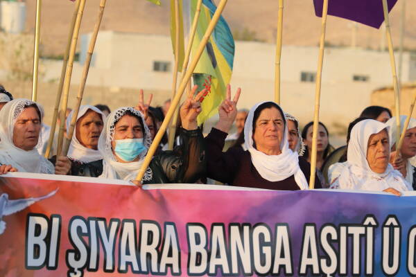 Daxuyanî bi van gotinan dawî bû: “Parastina aştiyê parastina jiyanê ye, mezinkirina aştiyê mîsogerkirina çanda demokratîke. Divê roja aştiya cîhanî de, em bang li tevahî jinên cîhanê û mirovahiyê dikin, werin em bi hev re dengê aştiyê bilind bikin, polîtîkayên şer vala derbixin û yekitiya demokratîk avabikin. Ji ber ku em dizanin aştî ji jinê despêdike, bi xwezayê re bi hêz dibe û bi azadiya gelan re mayînde dibe. Îro em weke jin, ciwan û gelê wargeha Şehîd Rustem Cudî, bang dikin ji şer re na, ji dagirkeriyê re na, ji qirkirina jin û civakê re na, dibêjin bijî xwişk û biratiya gelan, bijî civaka demokratîk.”
