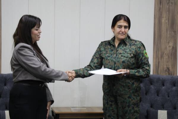 Akademiya Jineolojî ya Rojhilata Navîn, nameyên Jinên Rojhilata Navîn ku bi hezkirin û rêzdarî ji şervanên Yekîneyên Parastina Jinê (YPJ) re nivîsandine, radestî YPJ’ê kir.