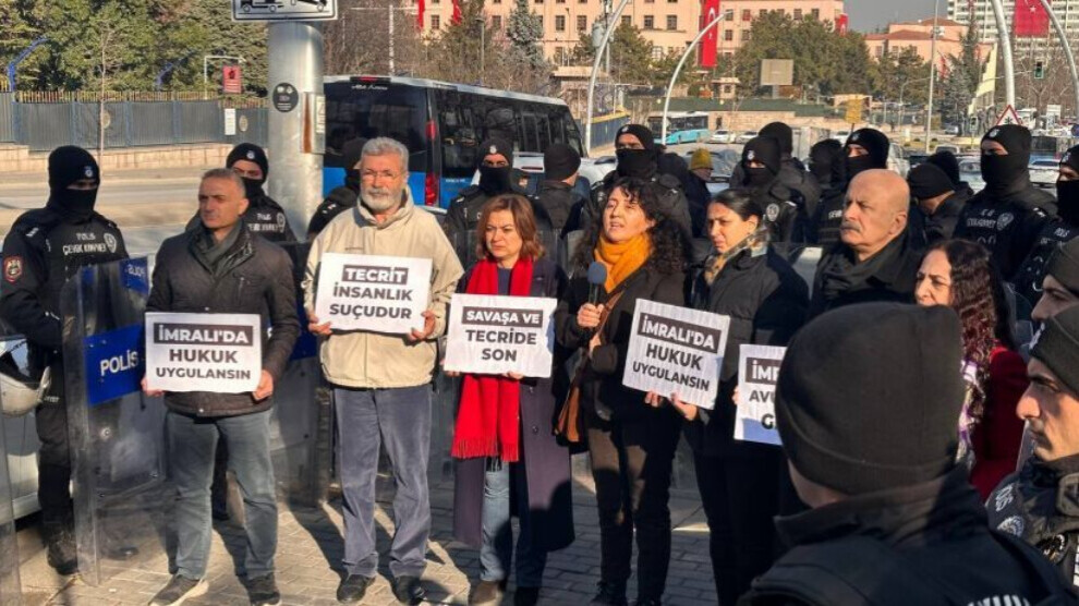 Berdevka HDP'ê Ebru Gunay di daxuyaniyê de diyar kir ku li dijî tecrîda li Îmraliyê li ber Wezareta Edaletê nobetê digrin û got ku ji aliyê polîsên Enqereyê ve hatine astengkirin û wiha got: “Tecrîda ku em îtîraz dikin ev e. Em bi tabloya rastiya Tirkiyeyê ya ku edalet lê tune ye li ber deriyê meclisa ku îradeya gel lê tê astengkirin re rû bi rû ne. Astengkirina îradeya gel, domandina neheqiyê israra di polîtîkayên tecrîdê de ye.”
