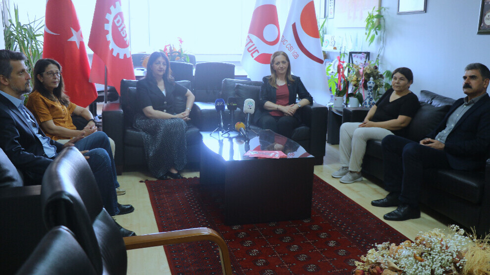 Stenbol - Hevseroka Giştî ya Partiya Demokratîk a Gelan (HDP) Pervîn Bûldan û şandeya pê re, di çarçoveya 5’emîn Kongreya Awarte ku dê di 3’yê tîrmehê de bê lidarxistin de ji bo dan û stendina fikran bikin serdana Konfederasyona Sendîkayên Karkerên Şoreşger (DÎSK) kir. Di hevdîtina li Navenda Giştî ya DÎSK’ê pêk hat de Bûldan, Cîgirên Hevserokên HDP’ê Şaziye Kose û Garo Paylan û parlamenter Oya Ersoy cih girtin.