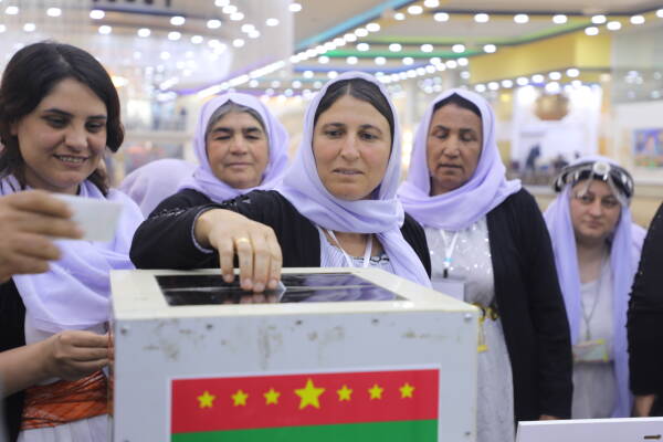 Şengal – Di 5’emîn Kongreya Meclisa Xweseriya Demokratîk a Şengalê (MXDŞ) ku duh hat lidarxistin de jin bi fîstanên xwe yên spî bejdar bûn, hewaya Nîsanê di kongreyê de hebû. Cihê meha Nîsanê li ba civaka Êzidî di kongreya Şengala Demokratîk de îfadeya xwe dît. Nîsan weke ji dayikbûna azadiyê, hatina biharê û cejna Çarşema Serê sale tê pîrozkirin. Di 5’emîn Kongreya MXDŞ’ê de wateya meha Nîsanê du qat zêde bû. Jinên Êzidî yên bi felsefeya Jin Jiyan Azadî rabûn ser lingan, ji bo avakirina MXDŞ’ê 9 sal e xebatek bêhempa dimeşînin. Jin li Şengalê bi pêşxistina rengê Ezda, li dijî netewperestiyê sekinîn, hemwelatiyên ku parastina xaka xwe herî baş dikin û feraseta ekolojîk pêş bixin û dikaribûne bibin pêşeng. Jinên Êzidî rola pira di navbera Êzidatî û Xweseriya Demokratîk a Şengalê de girtin ser milên xwe û dikaribûn bibin dil û mejiyê vê civakê.