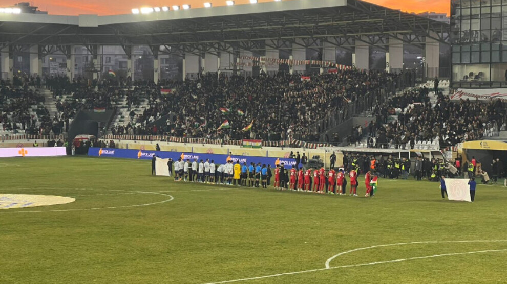 Silêmanî- 27’ê Çileyê di stadyuma futbolê ya Newroz a li bajarê Silêmanî, bi beşdariya zêdetir 10 hezar welatiyan bi bi diruşmeyên ‘Bijî Berxwedana Şervanan’, ‘Yeke Yeke Yeke gelê Kurd Yeke’, ‘Rojava ne bi tenê ye, Başur li pişte’, ‘Jin, Jiyan, Azadî’ piştevaniya xwe ya ji bo Rojavayê Kurdistanê dubare kirin. Her wiha ala Kurdistan û wêneyên şervanan di sahê de hatin berzkirin. Ji ber hemû dahata maçê ji bo alîkariya Rojavayê Kurdistanê dê were xerckirin, gelek kes ji bo alîkariya Rojavayê Kurdistanê beşdar bûn.