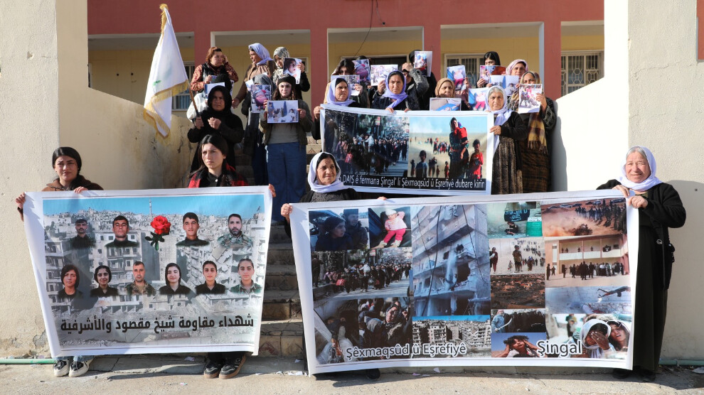 Şengal – Tevgera Azadiya Jinên Êzidî (TAJÊ) li mekteba sor a li navenda Şengalê daxuyaniyek da. Di daxuyaniyê de êrîşên qirkirinê yên çeteyên dawleta Tirk û HTŞ’ê yên li ser taxên Şêx Meqsûd û Eşrefiyên yên Helebê bi tûndî hatin şermezarkirin û bang li raya giştî û mirovahiya xwedî wîjdan hate kirin li hemberî vê hovîtiya ku li dijî gelê Şêx Meqsûd û Eşrefiyê tê kirin dawî li bêdengiya xwe bîne.