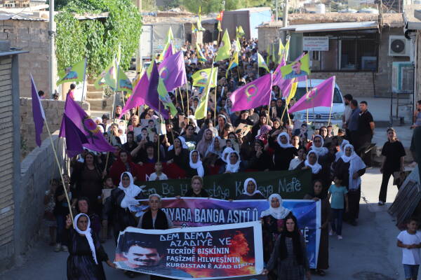 Mexmûr – Di bin pêşengtiya Meclîsa Îştar de li wargeha penaberan a Şehîd Rustem Cudî (Mexmûr) li dijî komploya navneteweyî ya 9’ê Cotmeha 1998’an ku li dijî Rêberê Gelê Kurd Abdullah Ocalan hatî pêkanîn, meşekî girseyî hat lidarxistin.