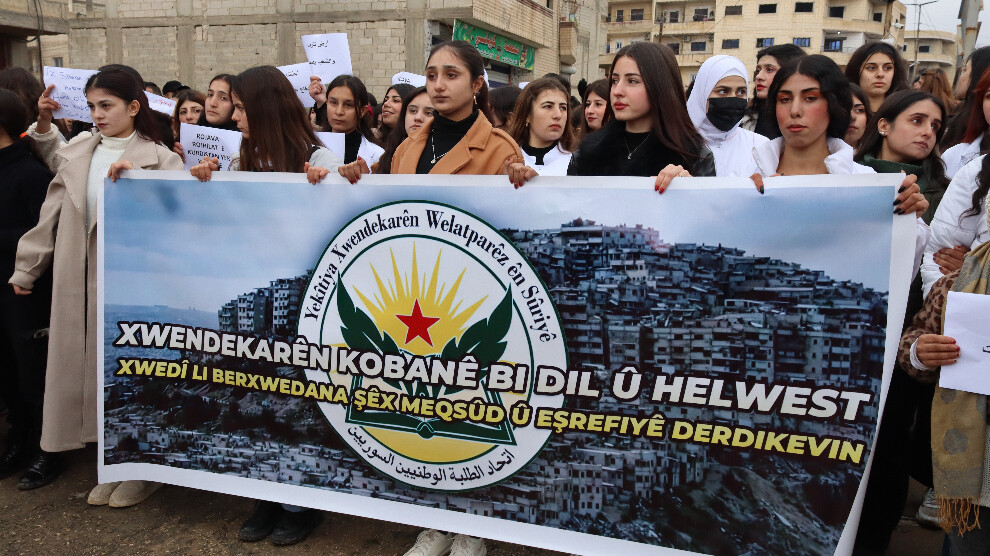 Xwendekarên Kobanê li dijî dagirkirina Şêx Meqsûd û Eşrefiyê meşiyan
