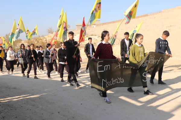 Endama komîteya amadekariya meşa xwendekarên meclisa YXA’yê Kajîn Ozek der barê meşê de wiha axivî: “Ev çend meh in em bi tu awayî agahî ji rêbertiyê nagirin divê êdî weke ciwan em bikevin nava hewldanan, ji ber ku rêbertî rê li ber azadiya jinan vekiriye û niha li Rojhilata Navîn jin ji bo azadiyê bênavber di nava berxwedanê de ne. Li ku derê dib bila bibe, ji bo em êdî dengê Rêberê xwe bibihîsin û bi awayek fizîkî di nava xwe de bibînin divê her dem em di nava çalakiyan de bin.”