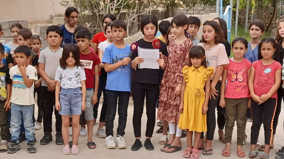 Zarokên wargeha penaberan a Mexmûrê yên Kevana Zêrîn bi daxuyaniyekê êrişên dewleta Tirk ên li ser zarokên Rojavayê Kurdistanê şermezar kirin.