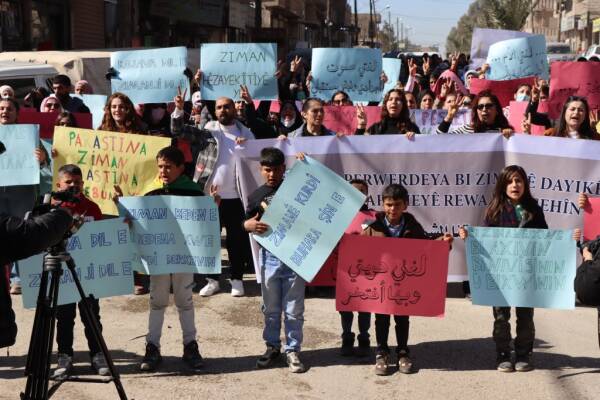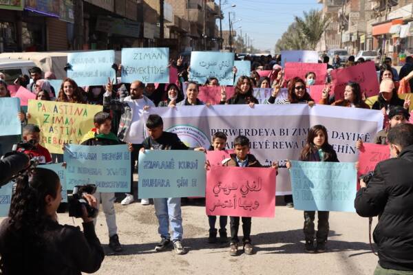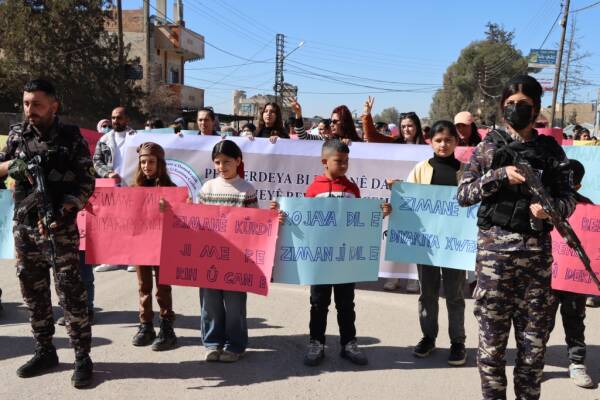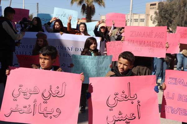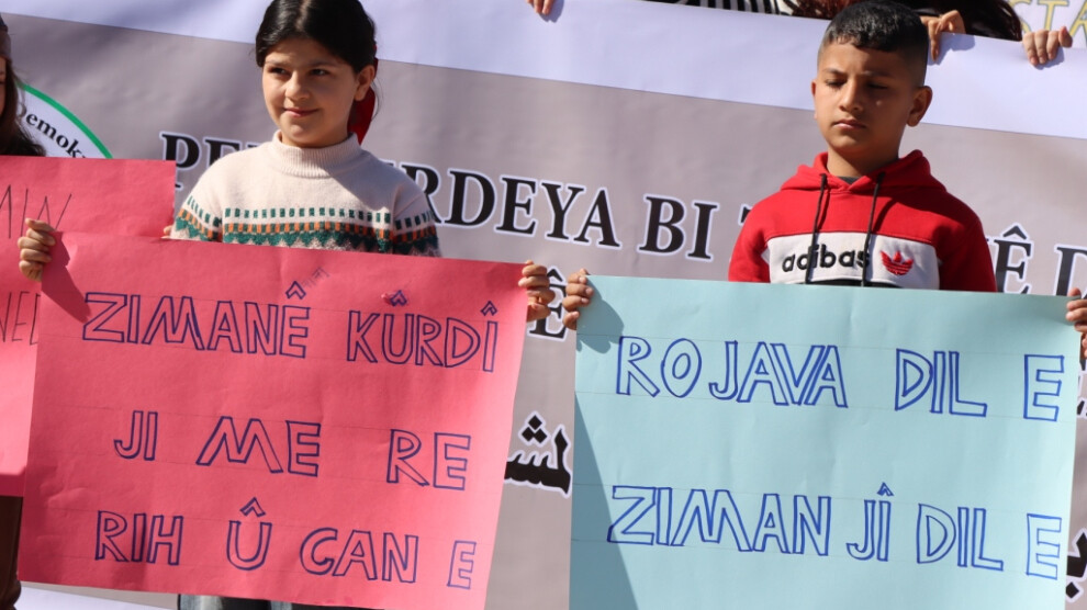 Şêniyên bajarê Hesekê bi boneya 21’ê Sibatê, Roja Zimanê Dayikê ya Cîhanî daketin kolanan û daxwaza mafê perwerdehiya bi zimanê dayikê kirin. Xwandevan gotin: “Divê zimanê perwerdehiyê bi zimanê Kurdî be.”