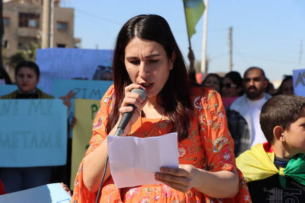 Meş li ber Parka Rêberê Gelê Kurd Abdullah Ocalan a li taxa Nasra dest pê kir û ber bi çerxerêya Sinalko a taxa Til Hecer veguherî mitîng.