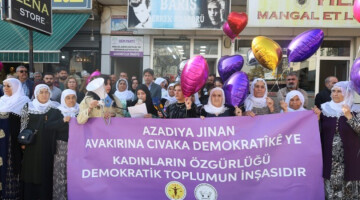 MED TUHAD-FED û TUAY-DER’ê di çarçoveya 25’ê Mijdarê de li gelek bajaran daxuyanî da û xwestin ku her kes bibe dengê girtiyên jin.