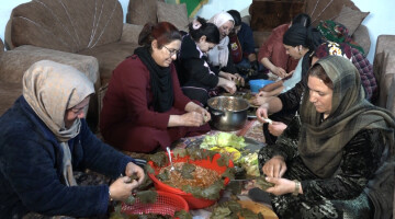 Jinên li bajarokê Girbewaî xwarinê ji Şervanan re amade dikin