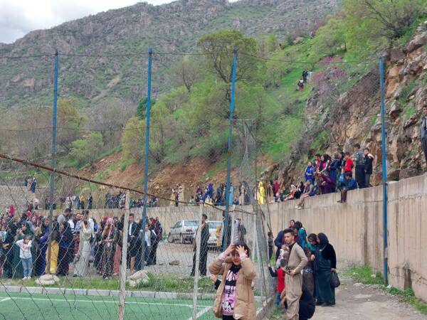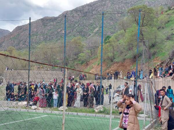 لە ناوچەی دیوەزناوی هەورامان، ژنان دوور لە دەستوەردانی هێزەکانی حکومەت و بەبێ جیاوازی ڕەگەزی، سەیری تۆپی پێیان کرد.