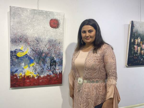 شیرین علو هونەرمەندێکی دیکەی ڕۆژئاوای کوردستانە لە شاری عەفرینەوە بە ٦ تابلۆ بەشداری کردووە، ئاماژەی بەوەکرد، من زۆر دڵخۆشم کە توانیومانە ئەو سنورە تێبپەڕێنین و دەستی هونەری باشوور و ڕۆژئاوای کوردستان بەیەک بگەیەنین، تابلۆکانم هەموویان باس لە دۆخی شارەکەم دەکات، شاری من کە عەفرینە شارێک بوو وەک بەهەشت بوو، پێش ئەوەی داگیر بکرێت ئێمە بە ئارامی تیایدا دەژیاین، دەرچوونمان لە عەفرین ئازارێکی سەخت بوو، بۆ ئەوەی لەو ئازارە دوور بکەومەوە دەستم بە وێنەکێشان کرد، تابلۆ بووە هۆکارێک بۆ ئەوەی لەو خەمبارییە ڕزگارم ببێت.