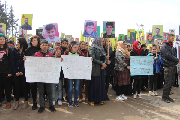 ڕێپێوانەکە بە دروشمی "شەهید نامرن" و "بژی بەرخۆدانی عەفرین" کۆتایی هات.