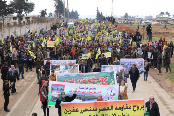 ئەنجومەنی کانتۆنی عەفرینی باکوور و ڕۆژهەڵاتی سوریا لە چوارەمین ساڵیادی داگیرکردنی عەفرین لەلایەن دەوڵەتی تورکیای داگیرکەر و هاوپەیمانەکانی ڕێپێوانێکی ڕێکخست.