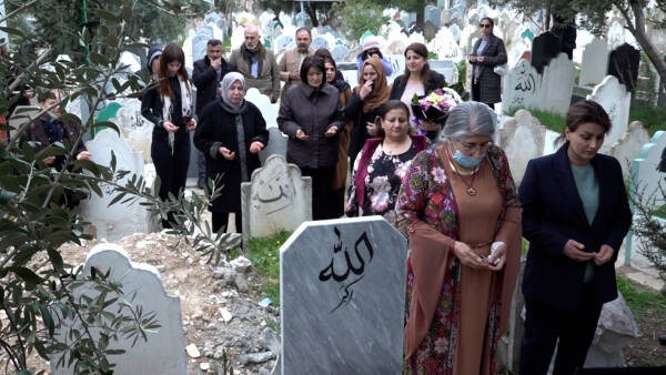 ژنان تاجەگوڵینەیان لەسەر گۆڕی شەهیدانی ژن دانا