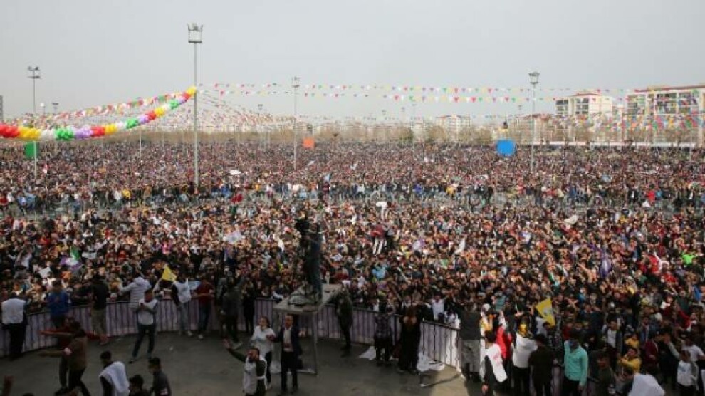 جەندرمەکانی دەوڵەتی تورکیا لە نەورۆزی ئامەددا ٦٣ کەسیان دەستگیرکرد، کە منداڵی یەک ساڵیشی تێدایە، هۆکارەکەشی لەبەرکردنی جلی کوردی و هەڵگرتنی ئاڵای کوردستان بوو.