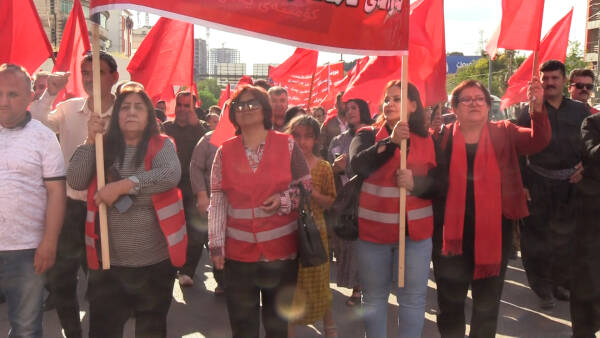 ڕێپێوانەکە بە بەرزکردنەوەی پۆستەری ناڕەزایەتی و وتنی دروشمی” ژن، ژیان، ئازادی، کار یان بیمەی بێ کاری بۆ هەموو ئامادە بە کاران” و لەبەرکردنی جلوبەرگی کرێکاران لە لایەن بەشداربووانەوە دەستیپێکرد.