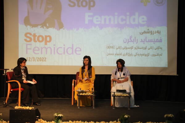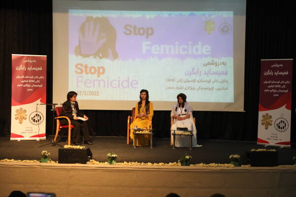 کۆبوونەوەی ڕاوێژکاری دۆخی ژنان لە چوار پارچەی کوردستان بە دروشمی "فێمیساید رابگرن-کۆمەڵکوژی ژنان ڕابگرن" بەردەوامە و ڤیدیۆیەک سەبارەت بە کوشتنی ژنان بەناوی "لەسەر بەردەنووسێک" کە لەلایەن یەکێتی ژنانەوە ئامادەکرابوو، نمایشکرا.