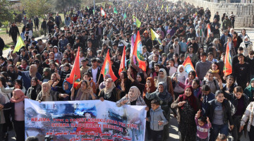 دانیشتووانی کانتۆنی فورات دژی کۆمەڵکوژی سیرین ڕێپێوان دەکەن