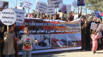 کورد، عەرەب، سووریانی و ئەرمەنییەکان دژی هێرشەکان ڕێپێوانیان کرد