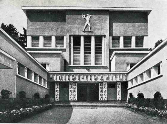یەکەم: ئۆفیسی باجی شارەکە، بلۆکێکی خۆڵەمێشی زەبەلاح و گەورەیە کە بەرزکراوەتەوە و ڕازێنراوەتە بە نەخشی هەڵکۆڵدراو لەسەر بەردەکان کە چیرۆک و مێژوویەک دەگێڕێتەوە، ئەویش سەرهەڵدانی ناجێگیرانەی فاشیزمی ئیتاڵیە کە وێناکردنی داگیرکردنەکانە لە ئەفریقا، لە ناوەڕاستیدا وێنەی مۆسۆلینی لەسەر ئەسپێک هەیە کە بە قۆڵی ڕاستی سڵاوێکی ڕۆمانیانە دەکات و ئەم باڵەخانەیە نیشاندەری هێز، دەسەڵاتداری و داگیرکارییە و وەک نمونەیەکی تەلارسازی فاشیزم دادەنرێت.