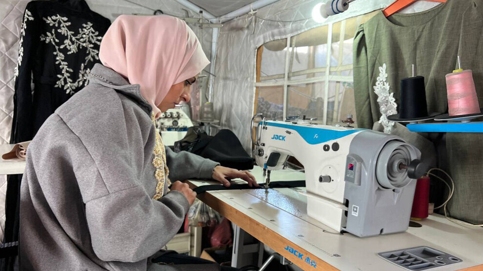 غەززە-لە چادرێکی تەنگدا لە کامپی پەنابەرانی زهور لە ڕۆژئاوای غەززە، دیوارە قوماشییەکانی بەزەحمەت لە بەرگەگرتنی مرۆڤ زیاترە، ئیسرا ئەبو قمسانی تەمەن ٣٣ ساڵ، لەبەردەم ئامێرێکی بچووکی درووماندا دانیشتووە، وەک ئەوەی ژیان لە درزەکانی ئازارەوە پارچە پارچە بکات، ئەم ئامێرە تەنها ئامرازێک نییە، بەڵکو پەنجەرەیەکە کە لە ڕێگەیەوە هەوڵدەدات دوو جار ئەوەی لێی دزرابوو وەربگرێتەوە: ماڵەکەی، وەرشەکەی و ئەو ژیانەی کە لە دەزوو و دەرزی و خەونەکان بونیاد نراوە.