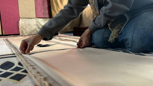 Israa Abu Al-Qumsan, çadırı hem ev hem de iş yeri olarak kullanırken, sekiz yaşından küçük iki çocuğuna bakmakla günlük sorumluluklarını dengelemeye çalışıyor. Aynı alanın içinde hem anne, hem bakıcı hem de işçi rolünü üstlenen Israa Abu Al-Qumsan, gününü dikiş ve nakış işleriyle geçirirken bir yandan da yaşananların karmaşıklığını tam olarak anlamasalar da etkisini hisseden çocuklarının ihtiyaçlarıyla ilgileniyor. Israa Abu Al-Qumsan, "Bazen onları izlerken çalışıyorum, bazen de onlar için her şeyi bırakıyorum. Burada ev ve iş arasında bir ayrım yok, her şey iç içe geçmiş durumda” diye kaydediyor.
