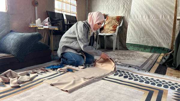 Gazze’nin El-Zuhur Kampı’nda yaşayan Israa Abu Al-Qumsan, çadırında kurduğu dikiş makinesiyle yeniden üretime dönerek, “Sadece hayatta kalmak için çalışmıyorum, koşullar ne olursa olsun yeniden başlayabileceğimi kanıtlamak istiyorum” diyor.