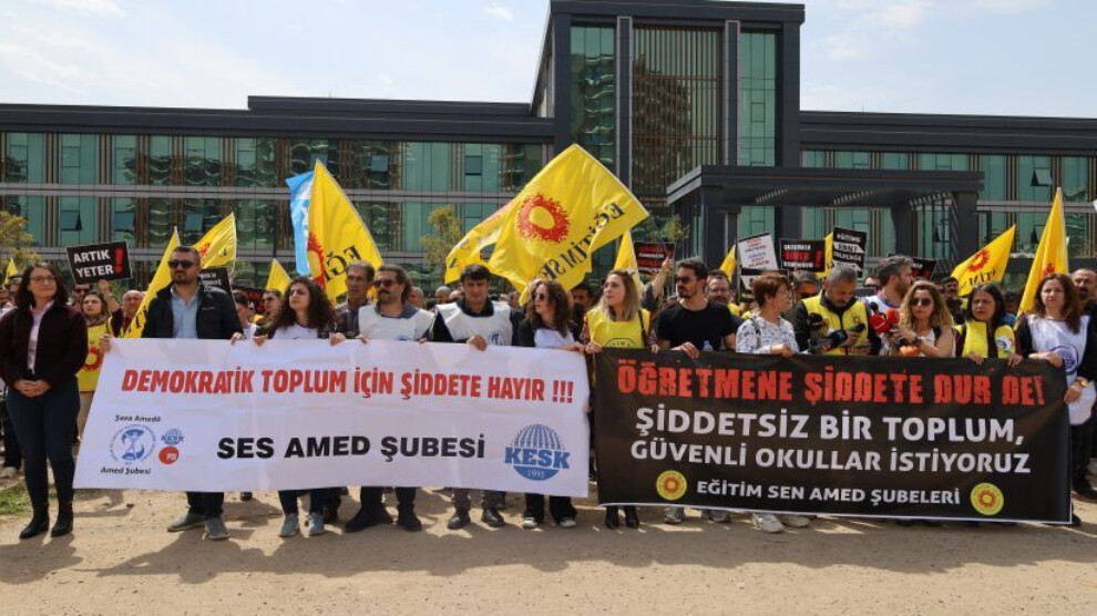 Amed’de ise Sağlık ve Sosyal Hizmet Emekçileri Sendikası (SES) Amed Şubesi ile KESK Amed Şubeler Platformu yürüyüş gerçekleştirdi. Lunapark Kavşağı’ndan Diyarbakır İl Milli Eğitim Müdürlüğü önüne kadar yapılan yürüyüşe çok sayıda eğitimci katılırken, CHP Milletvekili Sezgin Tanrıkulu da yer aldı. “Demokratik toplum için şiddete hayır” ve “Şiddetsiz bir toplum, güvenli okullar istiyoruz” pankartlarının açıldığı yürüyüşte sık sık “Önlemler alınsın, çocuklar ölmesin”, “Eğitim düşmanı Yusuf Tekin istifa” ve “Demokratik toplum, demokratik okul” sloganları atıldı.
