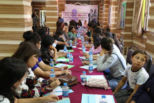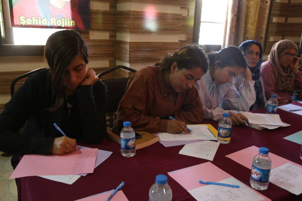 Genç Kadınlar Birliği’nin gerçekleştirdiği çalıştaya katılan kadınlar, erk zihniyetin tarihten bugüne kadınlara yönelik saldırılarına dikkat çekerek, “Ulus-devlet sistemine boyun eğmedik” sözü ile mücadele kararlılıklarına vurgu yaptı.