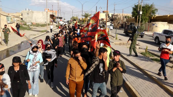 Şengal- Türkiye’ye ait silahlı insansız hava uçakları 2 aydır Şengal’e yönelik saldırılar düzenliyor. Şengal Özerk Yönetimi’nin Irak hükümetine çağrıda bulunarak, hava sahasını Türkiye’ye kapatma isteğinden bir sonuç alınamadı. Geçtiğimiz haftalarda da Türkiye’ye ait silahlı insansız hava uçakları Şengal'e 3 ayrı saldırı düzenlendi. Son olarak da Türkiye, 1 Kasım'da Şengal'in merkezindeki Hesen Maman Kubbesi yakınlarında bir saldırı gerçekleştirdi. Türkiye’nin son saldırısına karşı tepkilerini dile getiren Şengalli gençler, bir yürüyüş gerçekleştirdi.