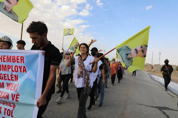 Êzidi gençler, Kürt Halk Önderi Abdullah Öcalan’a yönelik uluslararası komplo ve 9 Ekim Şengal Anlaşması’na karşı uzun yürüyüş düzenledi. Yürüyüş, Şengal Genç Kadınlar Birliği ve Êzidxan Gençlik Birliği öncülüğünde gerçekleşti. Êzidxan Asayişi’nden uzun yürüyüşle buradan Geliyê Kersê’deki Serok Apo Bahçesi’ne yüründü. Yürüyüş boyunca atılan sloganlar ile komplo lanetlendi. Yürüyüşün ardından eylem çadırına gelen gençler burada açıklama yaptı. Êzdîxan Gençlik Birliği adına ortak açıklamayı yapan Salim Şengali, Kürt Halk Önderi Abdullah Öcalan’ın fiziki özgürlüğünü sağlayana kadar direniş ve mücadelenin süreceğini kaydetti.