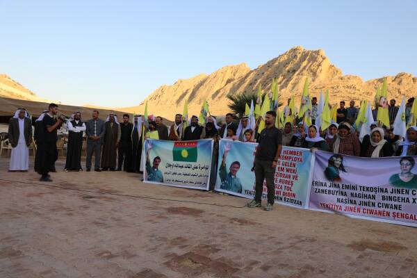 Êzidi gençler, Kürt Halk Önderi Abdullah Öcalan’a yönelik uluslararası komplo ve 9 Ekim Şengal Anlaşması’na karşı uzun yürüyüş düzenledi. Yürüyüş, Şengal Genç Kadınlar Birliği ve Êzidxan Gençlik Birliği öncülüğünde gerçekleşti. Êzidxan Asayişi’nden uzun yürüyüşle buradan Geliyê Kersê’deki Serok Apo Bahçesi’ne yüründü. Yürüyüş boyunca atılan sloganlar ile komplo lanetlendi. Yürüyüşün ardından eylem çadırına gelen gençler burada açıklama yaptı. Êzdîxan Gençlik Birliği adına ortak açıklamayı yapan Salim Şengali, Kürt Halk Önderi Abdullah Öcalan’ın fiziki özgürlüğünü sağlayana kadar direniş ve mücadelenin süreceğini kaydetti.