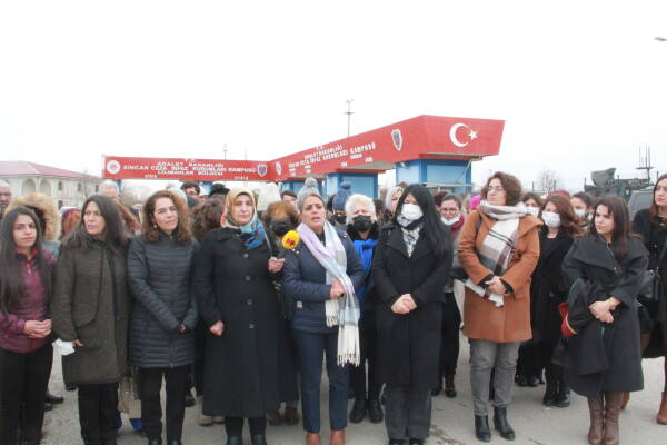 Kobanê Davası’nda yargılanan 13 kadın siyasetçi için Sincan Cezaevi Kampüsü önünde açıklama yapan HDP Kadın Meclisi Sözcüsü Ayşe Acar Başaran, dava öncesi kadın örgütlerine çağrıda bulunarak, “Gelin bu kumpas davasını hep beraber boşa çıkartalım” dedi.