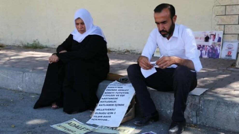 Riha- AKP Milletvekili İbrahim Halil Yıldız’ın koruma ve yakınlarının saldırısı sonucu eşi ve iki oğlunu yitiren Emine Şenyaşar ile saldırılardan yaralı kurtulan oğlu Ferit Şenyaşar’ın Urfa Adliyesi önünde başlattığı eylemleri devam ediyor. Sabah erken saatlerde adliye binası önüne gelen Şenyaşar ailesi eylemlerinin 129’uncu gününde nöbet eylemlerine başladı.