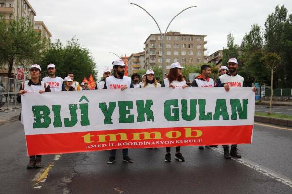 Mitingde sık sık “Bijî berxwedana kedkaran”, “Bijî 1 Gûlan”, “Emek bizim, söz bizim” ve “Yaşasın 1 Mayıs” sloganları atıldı. Mitingde Tertip Komitesi Başkanı Kamuran Taş, tüm dünyanın emekçilerini selamlayarak “Memleket isterim” şiirini okudu. Kamuran Taş, konuşmasında