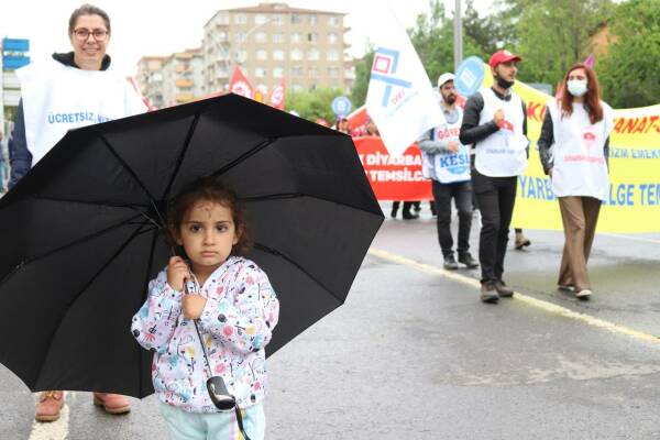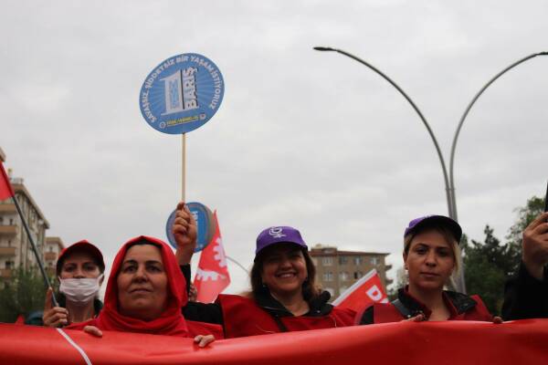 “Ülkenin tüm kaynaklarının ve imkânlarının bir avuç ayrıcalıklı zümre ve patronlara ayrılmadığı; işsizlikle, açlıkla, yoksullukla, artan borçlarla, salgın ile mücadele ederken emekçiler, yoksul daha yaşanılabilir bir memleket istiyoruz. Ölümüne çalıştırıldığımız işyerlerinin, açlık ve yoksulluk altında alınan ücretlerin, taşeron köleliğinin, güvencesizliğin olduğu bir memleket değil; çalışırken ölmediğimiz, insanca yaşayabildiğimiz bir memleket istiyoruz. Yasaların ve Anayasal hakların herkese uygulandığı bir memleket istiyoruz. Demokrasinin olduğu, örgütlenme ve grev hakkının güvence altında olduğu bir memleket istiyoruz. Eğitimin, sağlığın metalaştırılmadığı, tüm kamusal hizmetlerin hak olarak görüldüğü bir memleket istiyoruz” ifadelerine yer verdi.