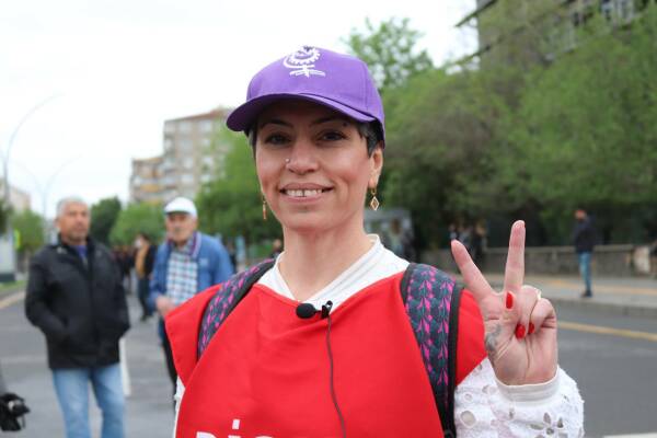 “İşçiler, emekçiler ve kadınlar için buradayız. Bu düzen böyle gitmez demek için hakkımızı savunmak sansüre hayır demek için buradayız. Bugün zamlar ve yaşanan kriz herkesi açlığa sürükledi. Emekçiler üstlerine yıkılan bu krizi kabul etmiyor. Kabul etmedikleri için bugün alanlardalar. İnsanların coşkusu çok yüksek ve talepleri çok net. İstediğimiz emekçilerin işçilerin hakkını alması, mobing ve sömürünün son bulması. Bunun için buradayız ve burada olmaya devam edeceğiz.”